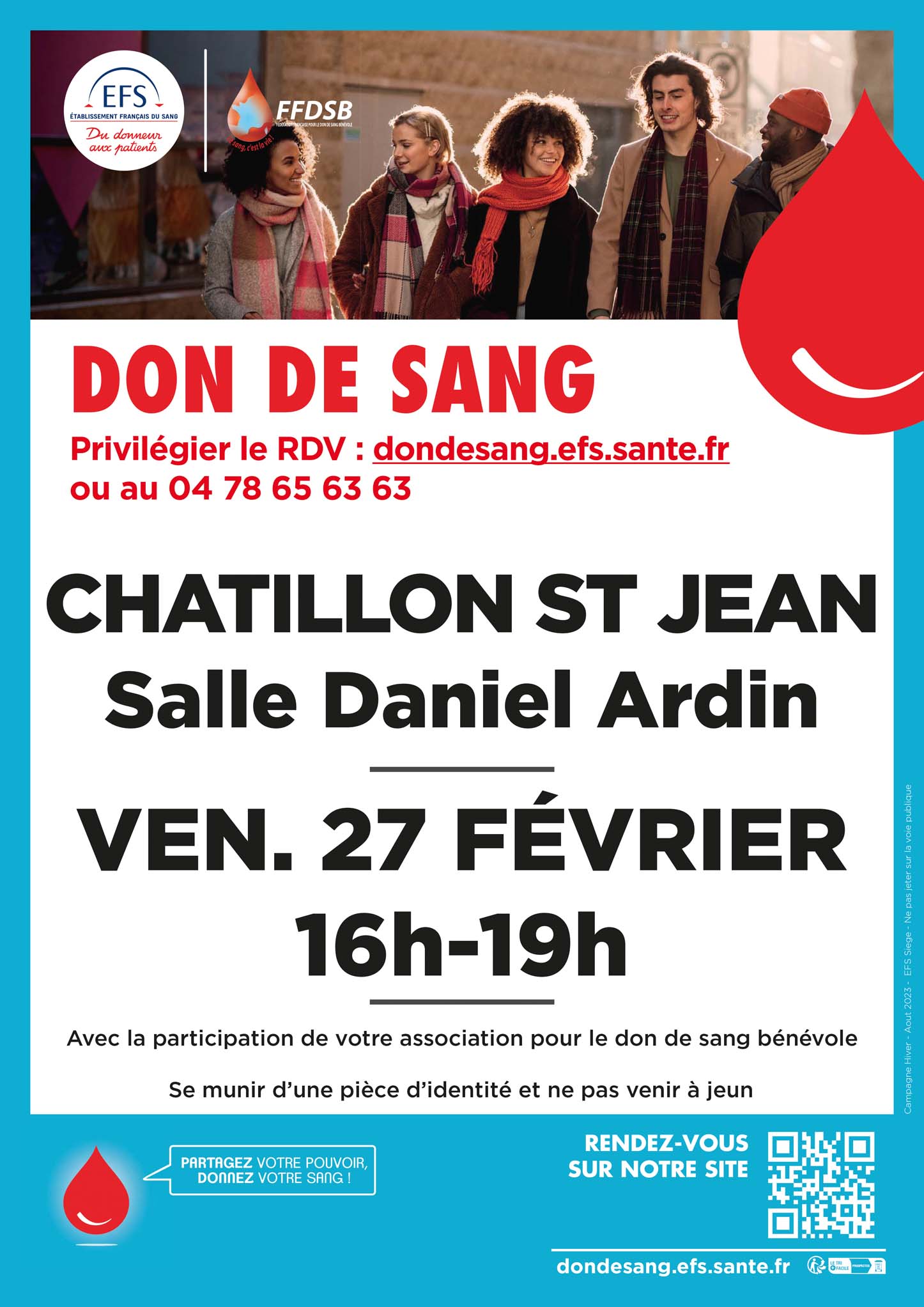 Une collecte de sang est prévue en Salle Daniel Ardin le vendredi 27 février de 16h00 à 19h00. Les donneurs doivent se munir de leur pièce d’identité pour être autorisés à être prélevés.